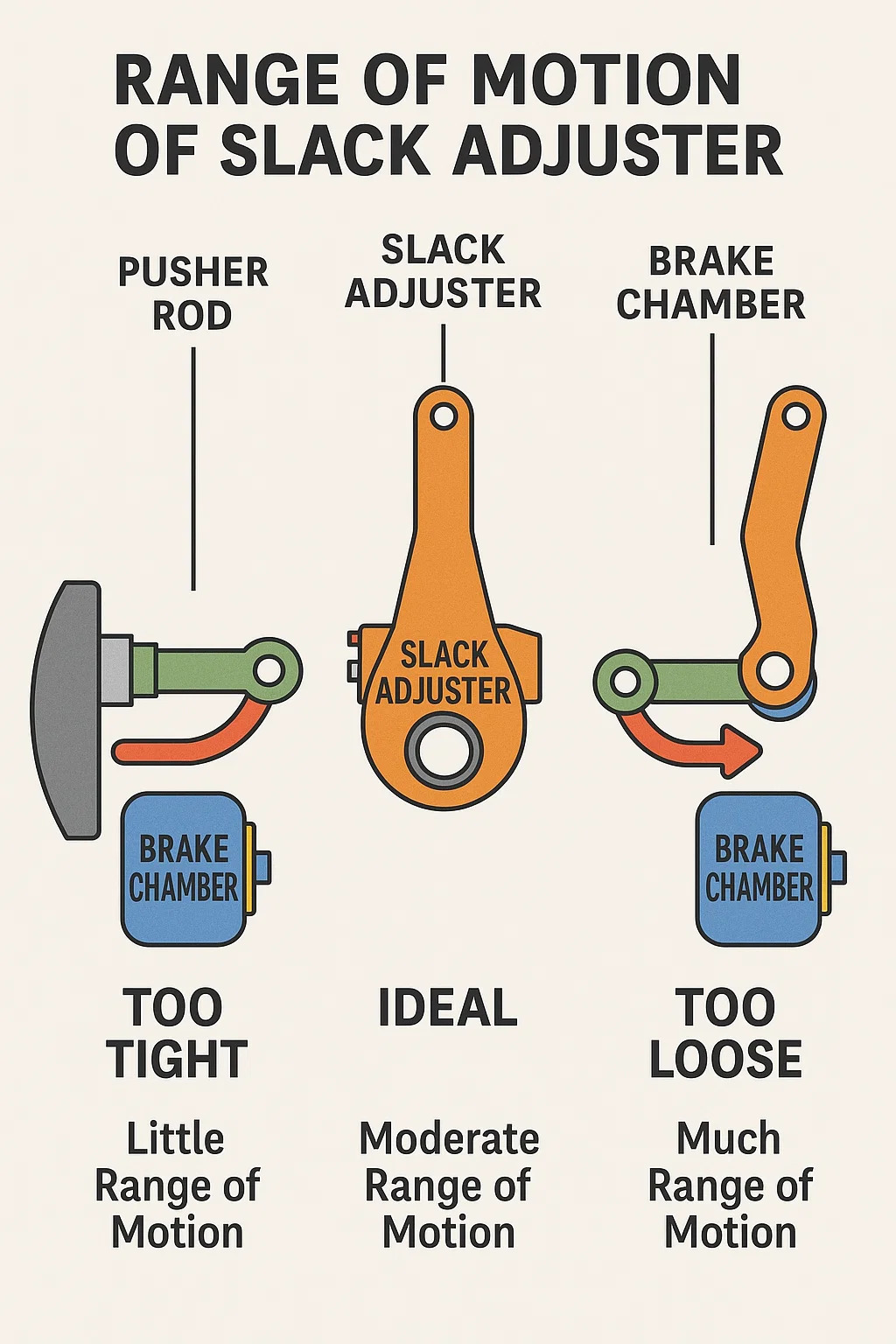 "Phạm vi chuyển động" hay chuyên nghiệp hơn là hành trình phanh, đề cập đến khoảng cách mà bộ điều chỉnh độ chùng di chuyển khi kéo cần đẩy trong quá trình kích hoạt hệ thống phanh hơi.