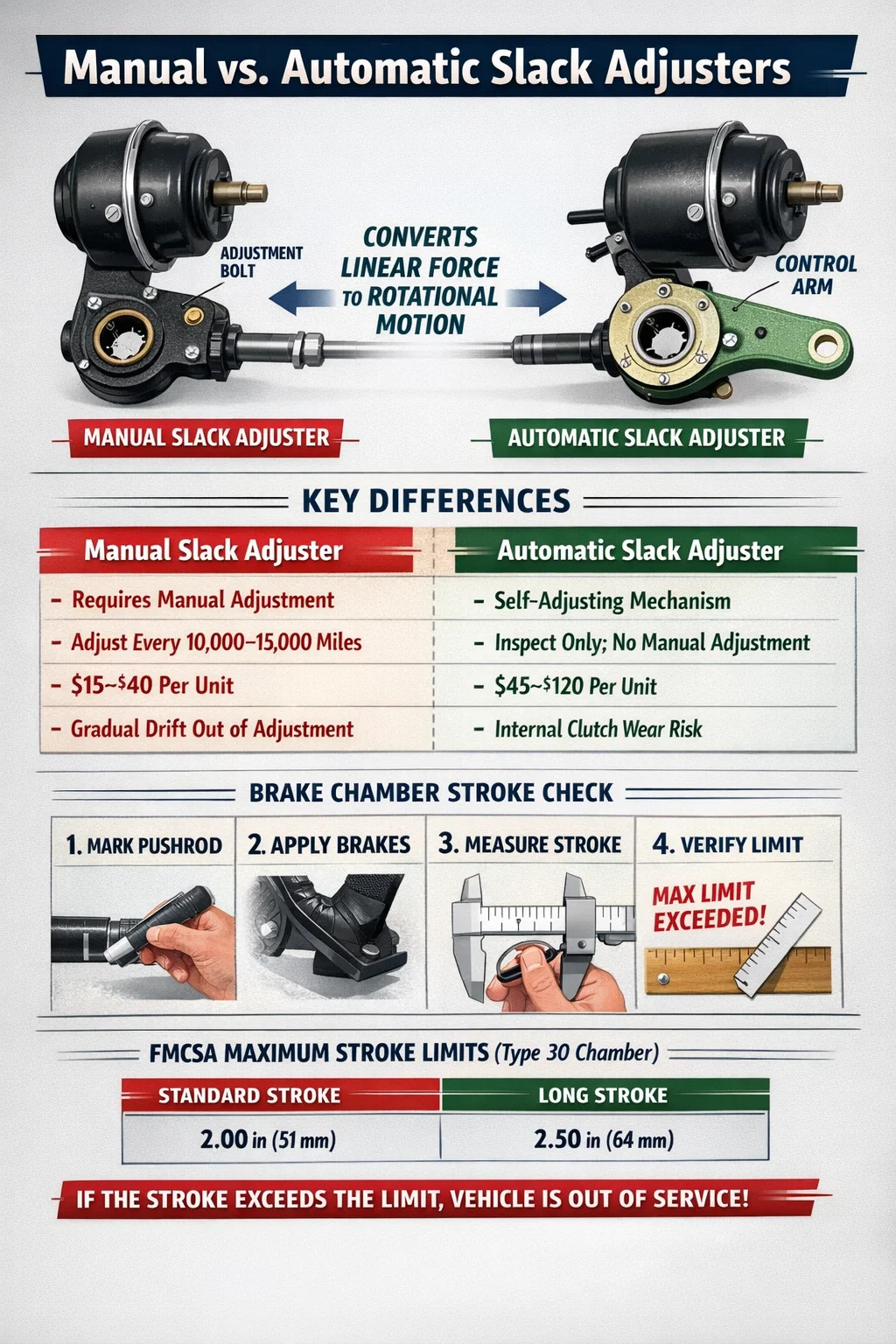 Từ góc độ hoạt động của đội xe, một đơn đặt hàng không hoạt động sẽ gây ra doanh thu bị mất, tài xế bị tạm giữ, chi phí kéo xe nếu có và điểm số SMS (Hệ thống đo lường an toàn) của nhà cung cấp dịch vụ sẽ ảnh hưởng đến xếp hạng phần trăm CSA trong 24 tháng. Chi phí cho việc bỏ sót việc kiểm tra bộ điều chỉnh độ chùng thường vượt quá 2.000 đến 5.000 USD khi tính toán tổng tác động vận hành — cao hơn nhiều so với chi phí của chính bộ điều chỉnh.